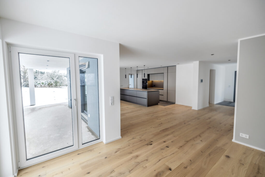 In Gomaringen bei Reutlingen entstand dieses Einfamilienhaus, das modernes Wohnen mit natürlichem Charme verbindet. Klare Linien, großzügige Fensterfronten und eine offene Raumgestaltung sorgen für lichtdurchflutete Räume, die Gemütlichkeit und Eleganz vereinen. Das Flachdach und die minimalistische Architektur setzen ein klares Statement und fügen sich gleichzeitig harmonisch in die Umgebung ein.