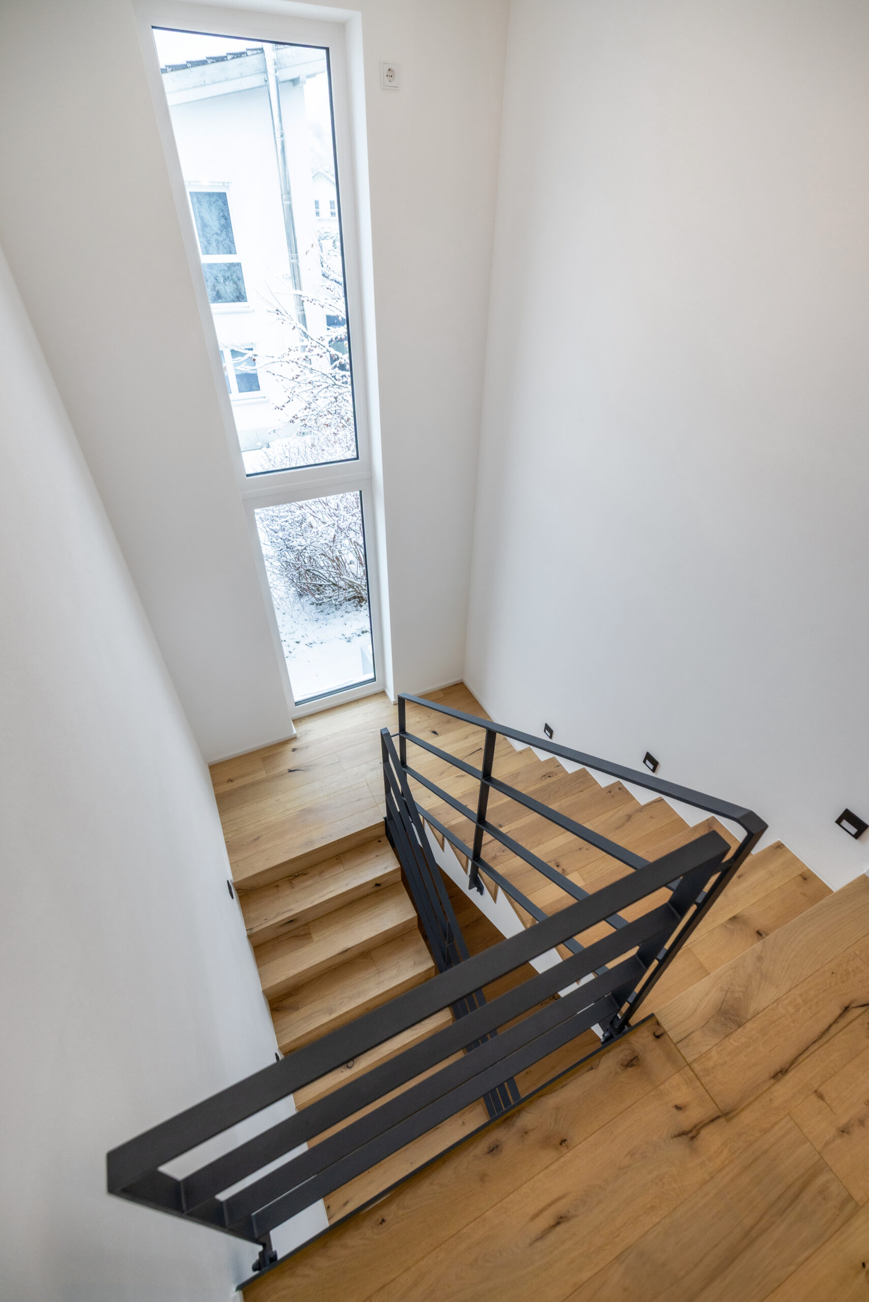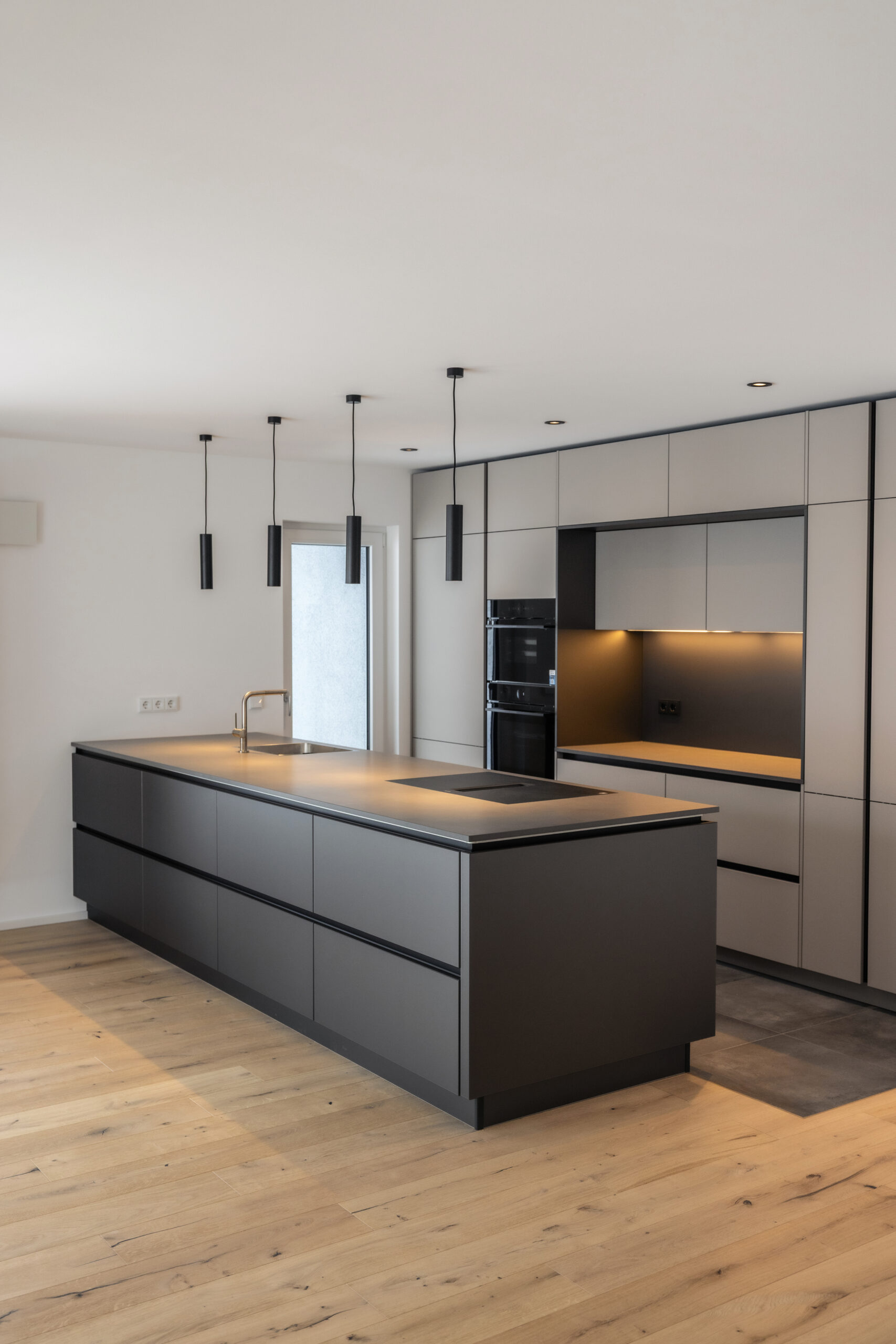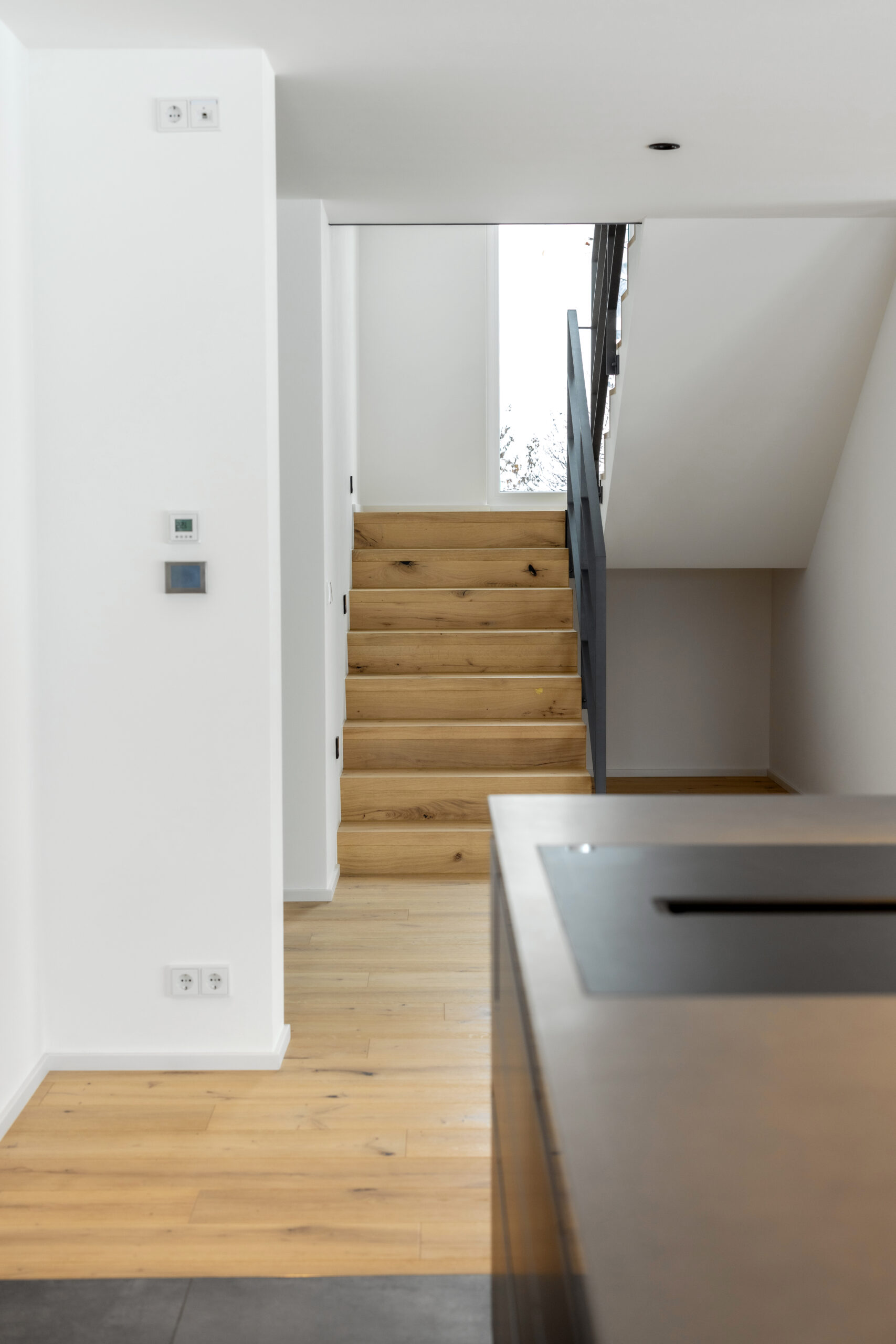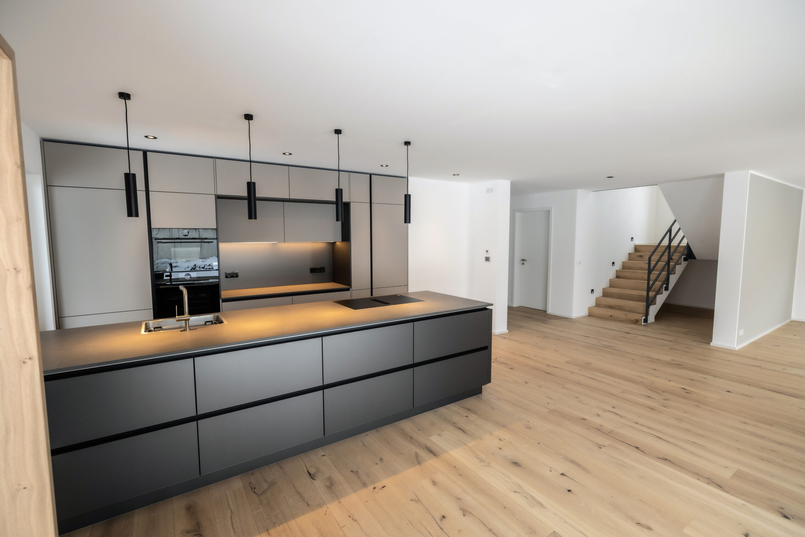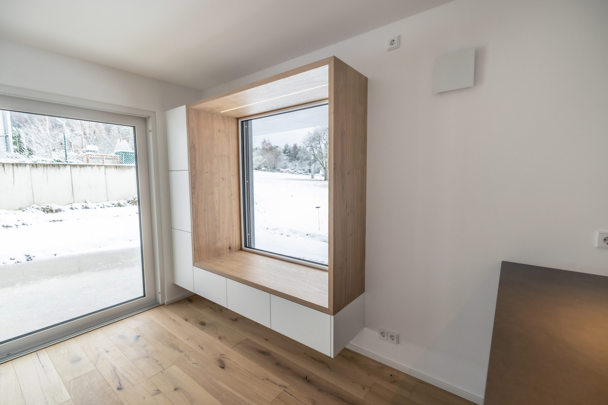 Mit klarer Formensprache und offener Raumstruktur entstand dieses Einfamilienhaus. Es erstreckt sich über zwei Geschosse und bietet ein durchdachtes Wohnkonzept. Der offene Wohn- und Essbereich mit Küche bildet das Herz des Hauses. Großzügige Fensterfronten sorgen für viel Tageslicht und schaffen fließende Übergänge nach außen. Ein besonderes Sitzfenster setzt einen architektonischen Akzent und lädt zum Verweilen ein.